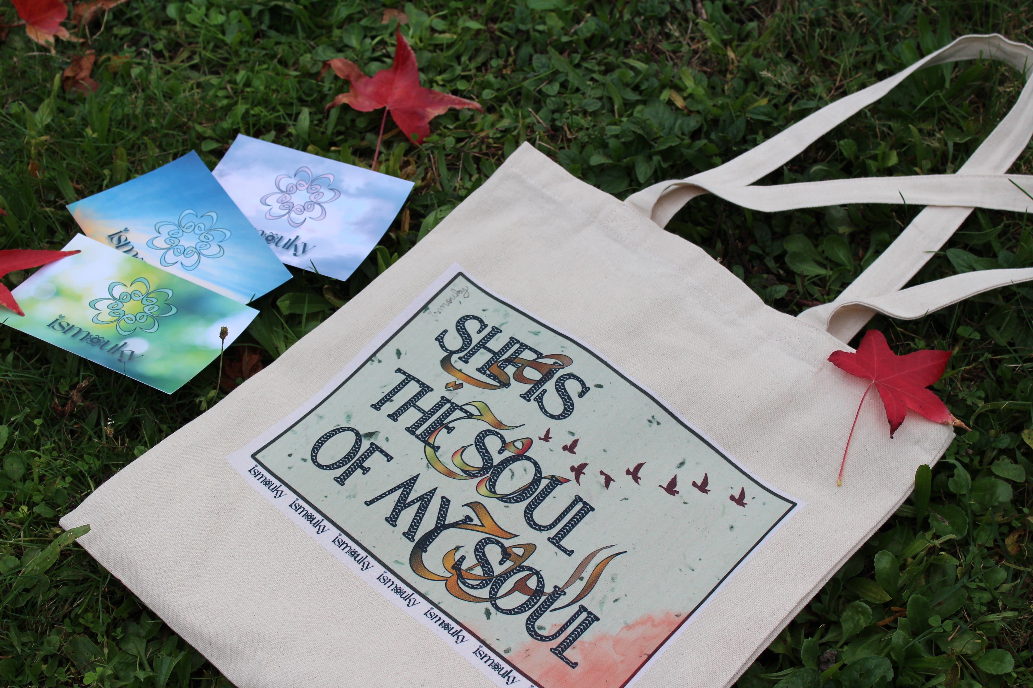 Animées par l’envie de créer avec sens, nous avons fondé une marque de tote bags artisanaux où se rencontrent calligraphie arabe et typographie latine. Chaque pièce est dessinée, imprimée et réalisée à la main dans notre atelier.